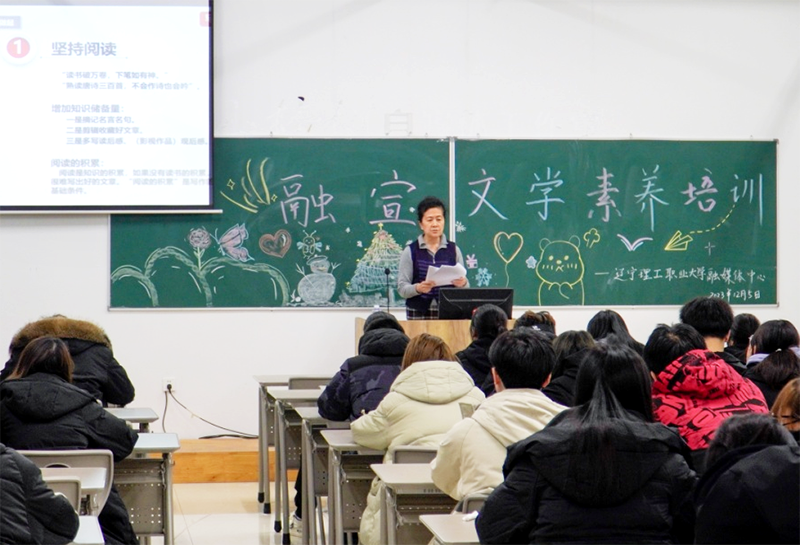 12月5日晚自习,辽宁理工职业大学融媒体中心在北校区1106室举办“文学写作”培训讲座,80余名同学参加。