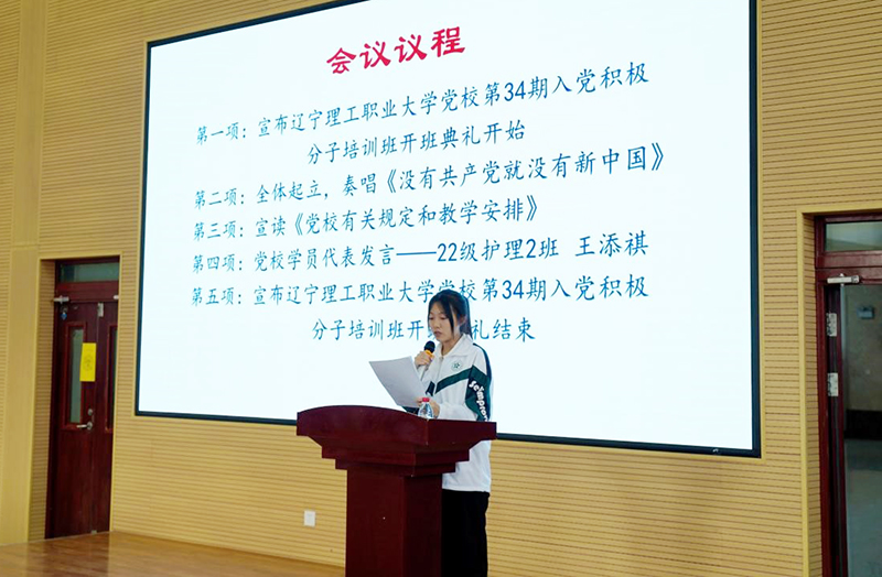 为深入学习贯彻习近平新时代中国特色社会主义思想和党的二十大精神,加强入党积极分子培养教育,11月22日13:00时,辽宁理工职业大学第34期入党积极分子培训班开班典礼暨党课第一讲在北校区主楼阶梯一报告厅举行。