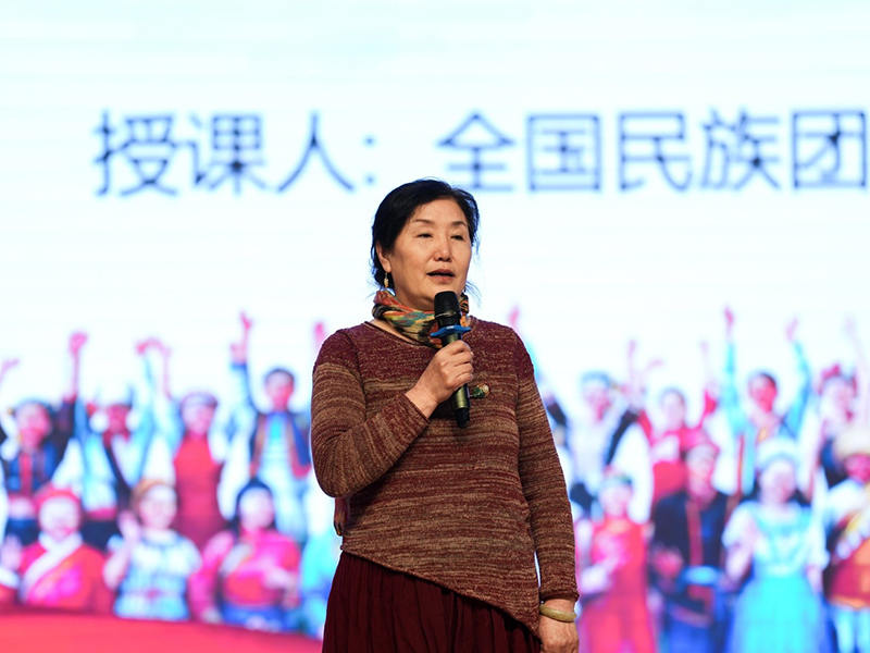 她宣讲的主题是《各族人民像石榴籽一样紧紧抱在一起》。
