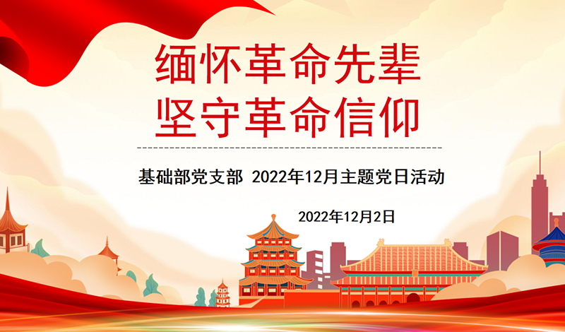 为深切缅怀党的第三代中央领导集体的核心领导人,伟大的马克思主义者,伟大的无产阶级革命家、政治家、军事家、外交家,久经考验的共产主义战士,中国特色社会主义伟大事业的杰出领导者,“三个代表”重要思想的主要创立者,敬爱的江泽民同志,12月2日下午3:00,基础部党支部以“缅怀革命先辈,坚守革命信仰”为主题开展了主题党日活动。
