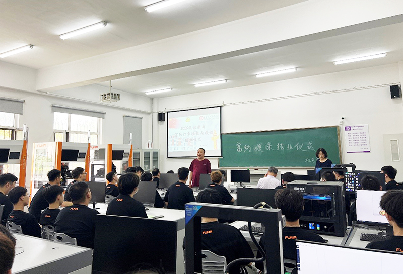 机电学院于7月5日下午2:30在机电楼107室召开2020级机制本富纳订单班校内授课结业仪式。参加活动的有机电学院院长张波、书记王勇、副院长李雷、副院长高利、专业授课老师、辅导员胡杨及2020级机制本订单班全体同学。