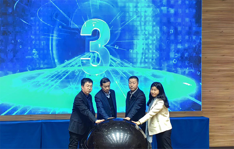董事长文秋与锦州市政协副主席、开发区党工委书记冯长伟等领导共同启动开幕式水晶球。