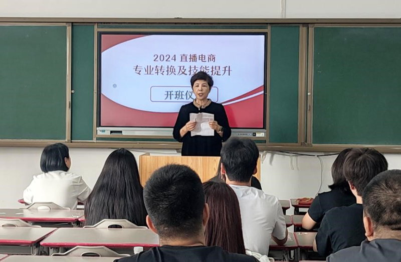 9月19日,数字商务学院正式启动2024直播电商专业转换及技能提升培训工作,在教学楼403举行培训班开班仪式,职业培训学院院长袁冬梅、副院长郭睿,数字商务学院副院长汤池,培训班任课教师和辅导员及全体学生参加开班仪式,开班仪式由培训班教师靖书博主持。