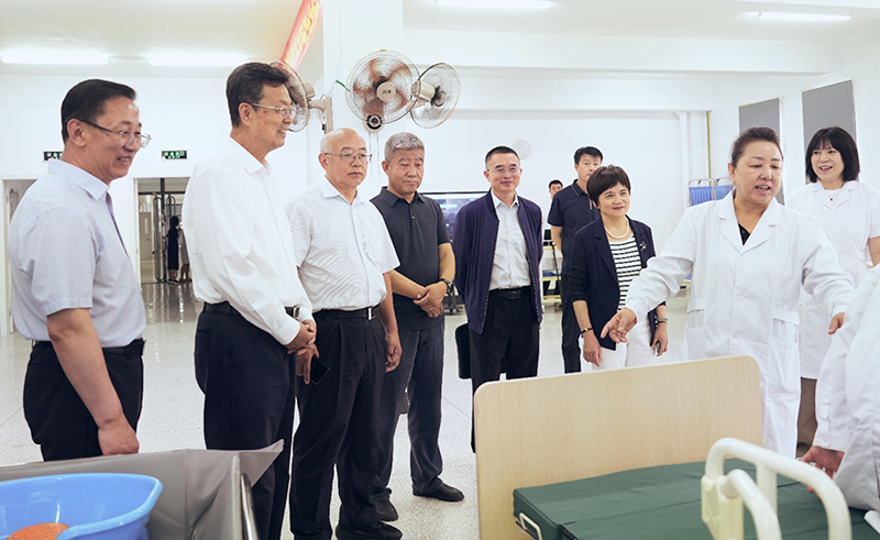为了深入贯彻执行《中华人民共和国老年人权益保障法》和《辽宁省老年人权益保障条例》,切实维护老年人合法权益,提升我省养老服务质量,6月12日上午,辽宁省人大常委会专题视察组莅临我校,对锦州市养老护理职业技能培训基地开展专项视察。省人大常委会委员、社会建设委员会主任委员于言良,省人大常委会委员、民侨外委副主任委员张兴奎等视察组成员,在锦州市人大常委会党组成员副主任袁力,市民政局局长王绍辉等陪同下,深入我校南校区健康文旅学院护理实训基地开展视察,全面了解养老职业技能培训工作成效。校长王忠诚就基地建设与培训工作向视察组作了汇报。