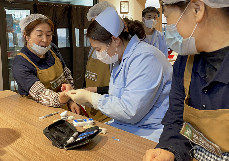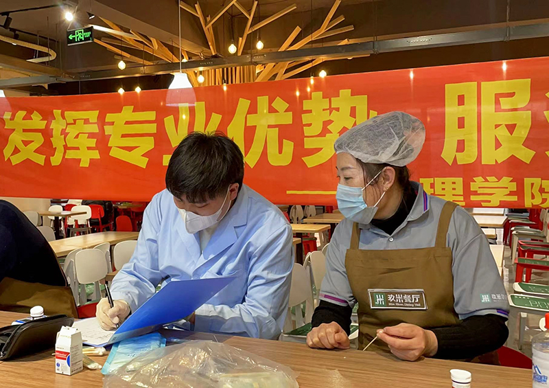 2022年3月3日,护理学院志愿者们走进公寓、走进食堂,为保洁阿姨、宿管阿姨、食堂工作人员测量血压、血糖、血型。希望通过自己的专业知识回馈学校,服务师生。同学们表示平时都是这些叔叔、阿姨默默地为我们服务,今天终于有机会利用自己所学到的本领为他们做一些事情,感到很骄傲。