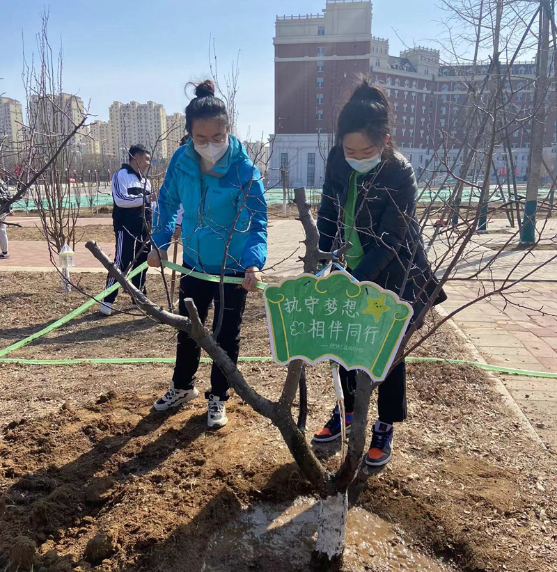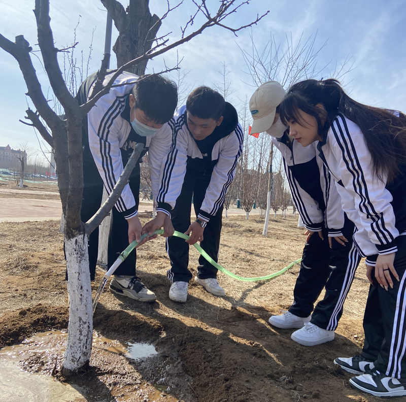 播撒一片绿色让校园更美,爱惜万千树木你我同行。在2022年植树节即将来临之际,环境卫生科于磊老师同软件学院的辅导员老师们,共同带领学生开展义务植树活动。亲手栽种下的一棵棵树木,为春日里的辽宁理工职业大学增添一抹动人的新绿。