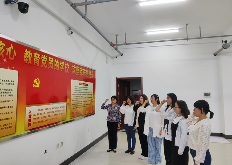在党日活动中观看了由《杨善洲》《觉醒年代》《激情岁月》《摇篮曲》等剪辑而成的入党宣誓短视频,在激动澎湃氛围中支部全体党员再次重温入党誓词。庄严宣誓:坚定理想信念,牢记身为一名党员与教师的责任与使命。