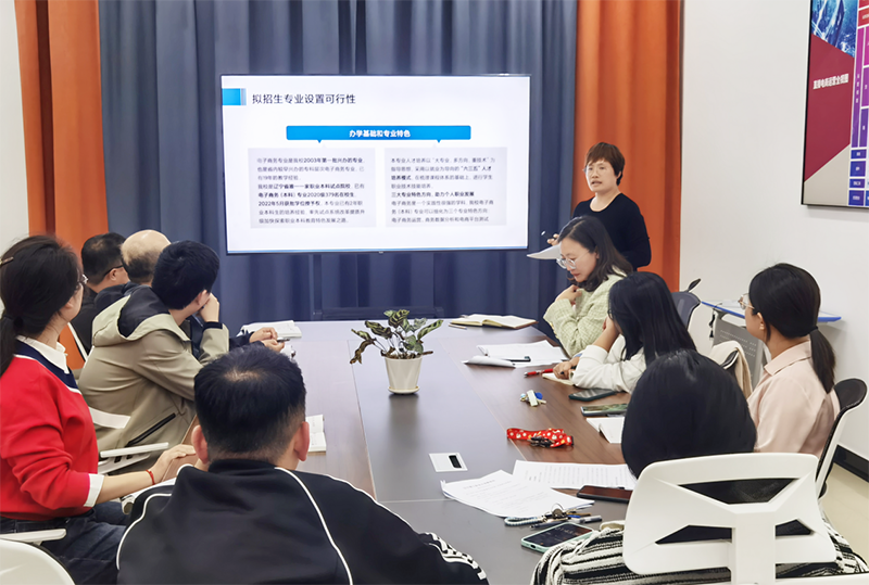 拟申报的全媒体运营(专科)、电子商务(本科)、商务数据分析与应用(专科)三个专业的三位申报人靖书博、侯旭芳、陈思老师分别从增设专业的必要性、可行性及专业建设思路,新增专业人才培养方案及办学条件,新增专业优势特色等方面进行了汇报。与会教师听取了工作汇报,并认真审阅申报材料,就专业发展规划、培养方案、专业特色、师资情况、实训基地建设、校企合作等方面展开咨询论证,并提出了具体可行的建议:作为新增专业,申报专业应充分整合学院现有资源,和专业群内其他专业优化互补的同时新专业应㢆清与现有专业的差异度。