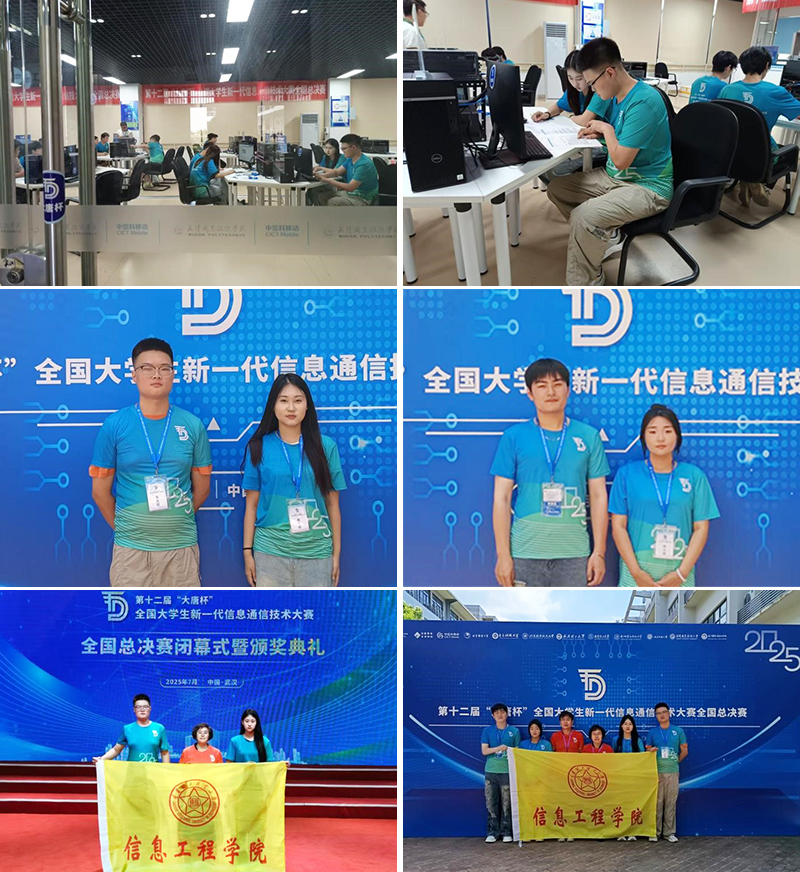 7月10日第十二届“大唐杯”全国大学生新一代信息通信技术大赛全国总决赛高职组在武汉职业技术大学拉开帷幕。赛道一(工程实践赛)经过10日(5G工程实践仿真赛)、11日(5G商用设备实践赛)两场紧张激烈比赛,我校信息工程学院王琼老师指导的2023级信息安全与管理专业的胡铭熙、胡可同学喜获国家三等奖佳绩。