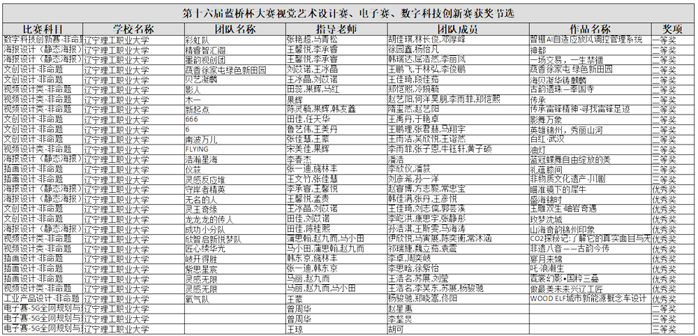 近日,第十六届蓝桥杯全国软件和信息技术专业人才大赛辽宁省赛中的视觉艺术设计赛、电子设计赛、数字科技创新赛成绩揭晓。我校学子在激烈的竞争中脱颖而出,凭借扎实的专业功底、出色的创新能力和顽强的拼搏精神,斩获省级竞赛一等奖1项、二等奖11项、三等奖6项、优秀奖12项。