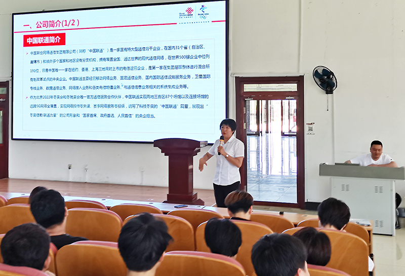 为了进一步促进校企合作,让同学们树立正确的就业观念,明确自我定位和努力方向,更好的了解人才市场需求状况,并为企业和区域经济发展培养高素质技能型人才。7月6日上午9时,我校信息学院与中国联合网络通信有限公司锦州分公司于主教学楼一楼阶梯教室联合举办了企业进校园专场宣讲会。
