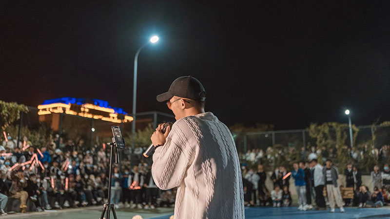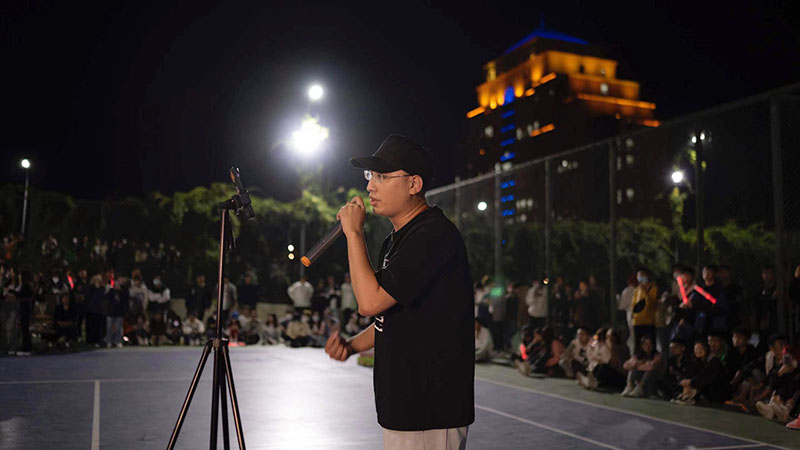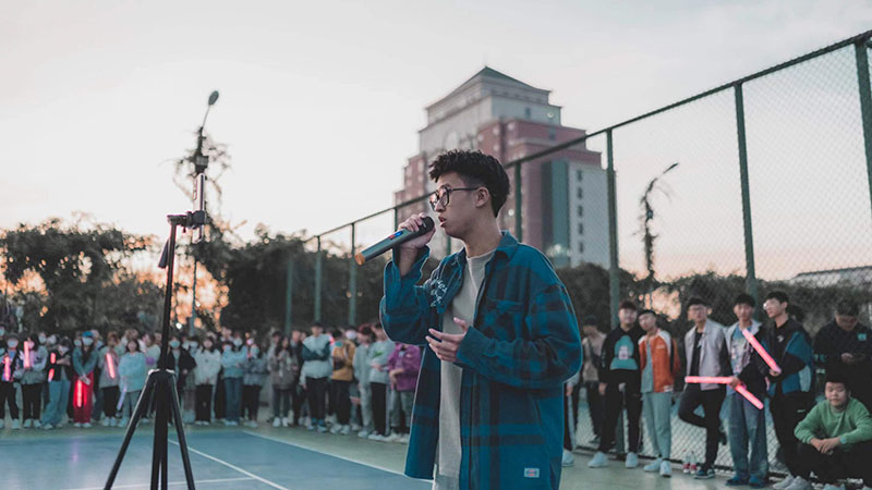 “一见倾‘新’,刚好遇见你!没错,你现在来到的是辽宁理工职业大学社团招新文艺演出的活动现场,我是主持人郭霖!”2022年9月24日18:00时,北校区网球场,人流攒动,同学们纷纷来到活动现场观看演出。在主持人热情的欢迎下,本场活动正式开始!