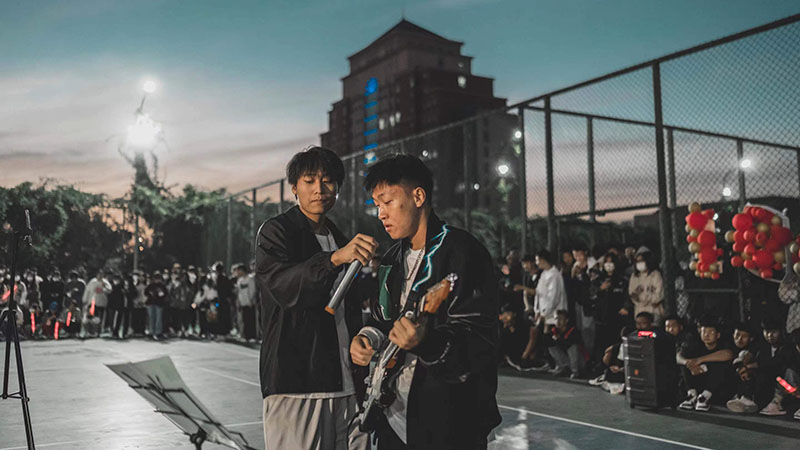 校领导及驻校老师也来到了活动现场,团委老师曹蕴韬、人事处老师曹薷倛也参与到了本场活动的演出,为在场的同学们带来歌曲《离歌》《阿刁》,将本场演出活动再次推向了高潮!