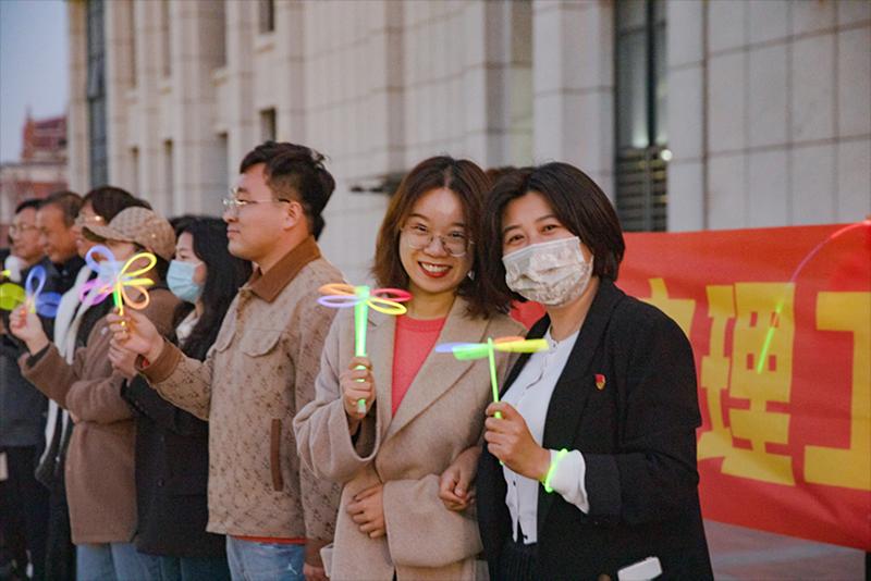 热烈庆祝中国共产党第二十次全国代表大会胜利召开,激发新时代大学生的青春活力和朝气蓬勃,培养学生德智体美劳全面发展,由校团委主办,践行学社承办的“炫彩荧光夜跑 耀动青春校园”主题活动于10月19日17:30时,在北校区主楼前广场举行。副校长时力华,马克思主义学院院长张觉力、就业指导处处长王萍、学生处处长张丽娜、招生办公室主任崔莉芳、团委书记魏腊月,以及各学院学生工作副院长和辅导员老师来到了活动现场。