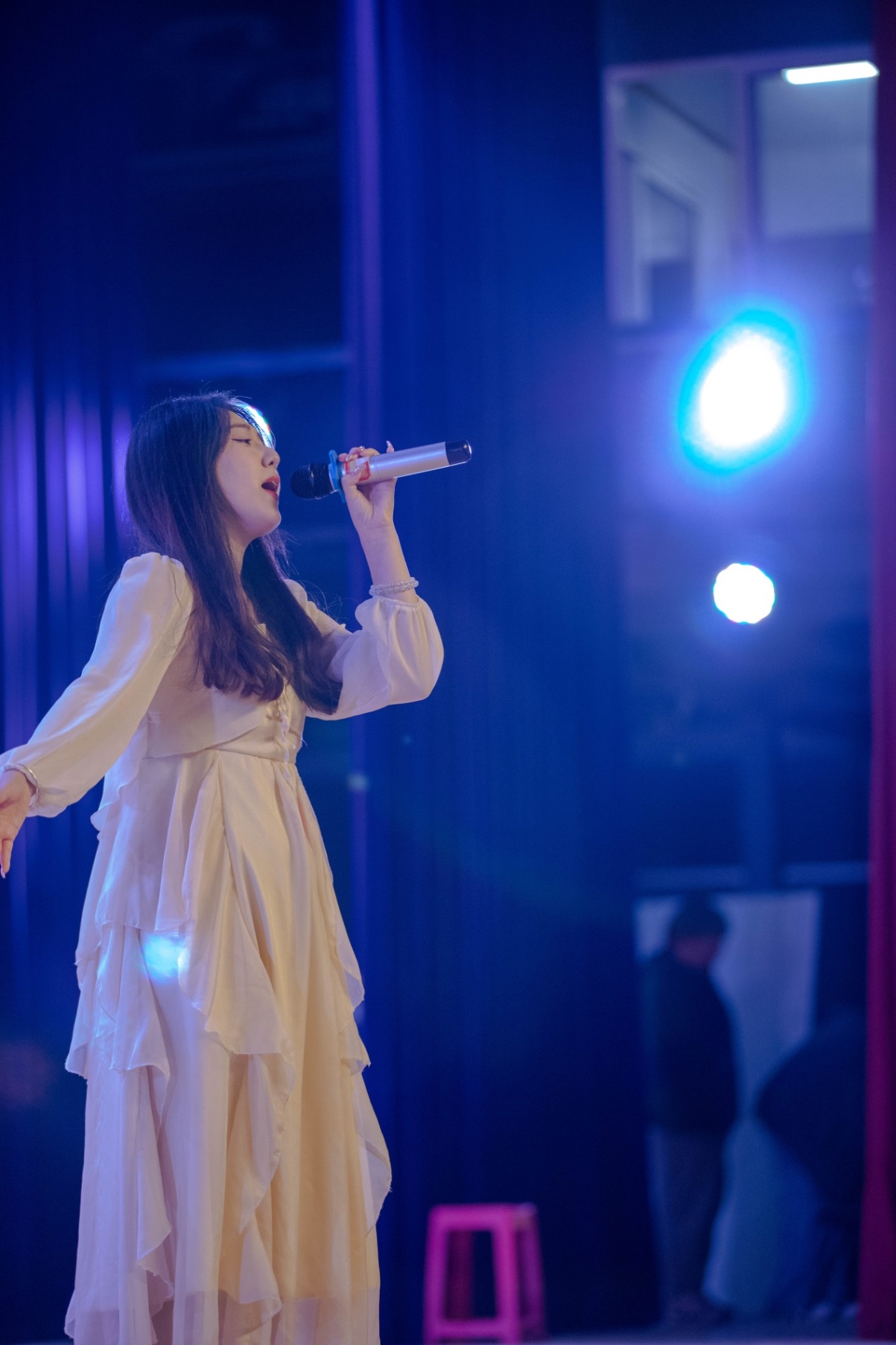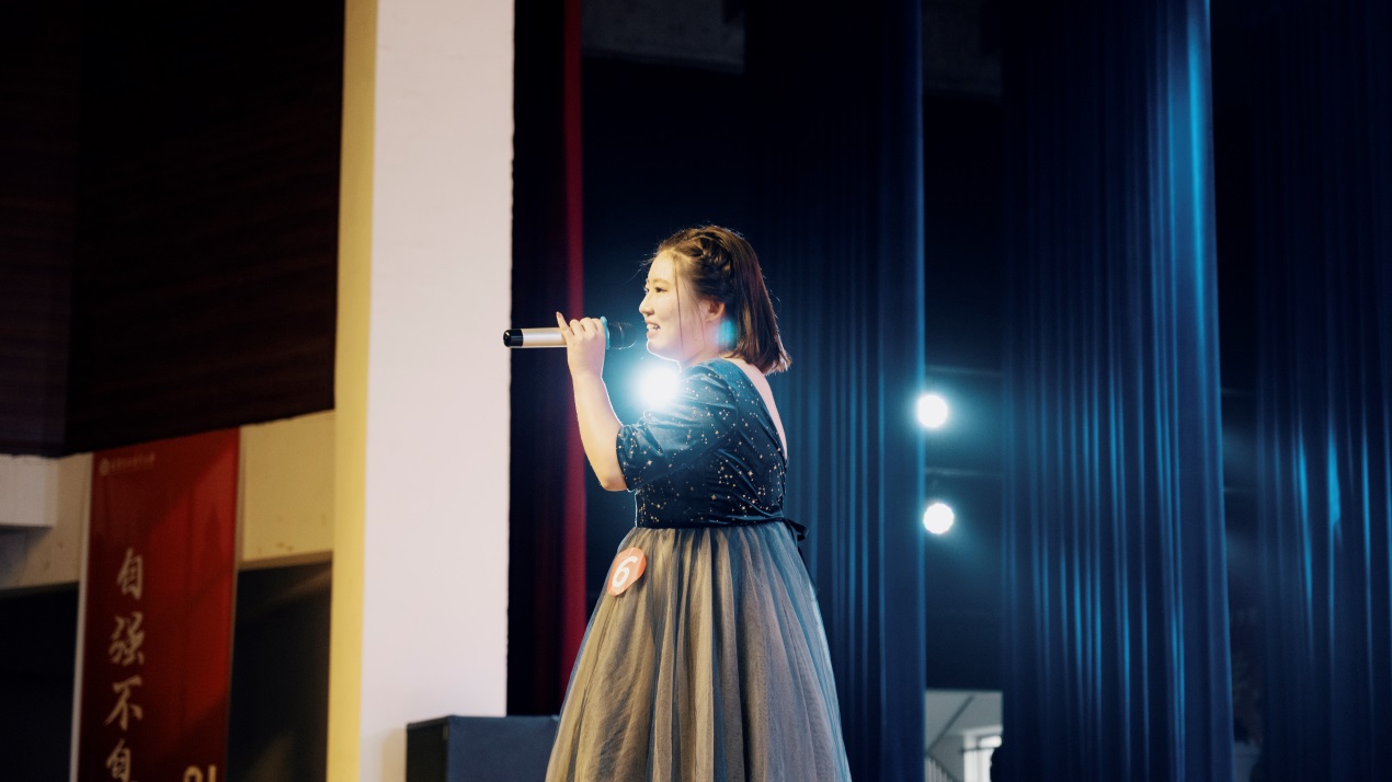 随后来自全媒体学院2020级电子商务专业的王鑫怡为我们带来了一首《身骑白马》,女声清澈悠扬却又满怀思念,她用歌曲讲述了《薛平贵与王宝钏》这一戏曲故事,情之深切动人肺腑。