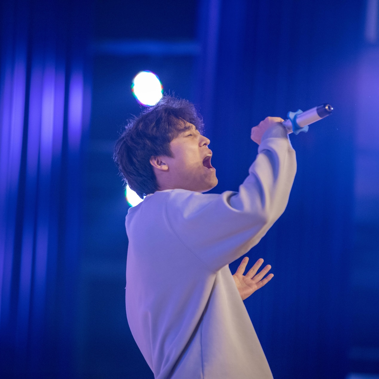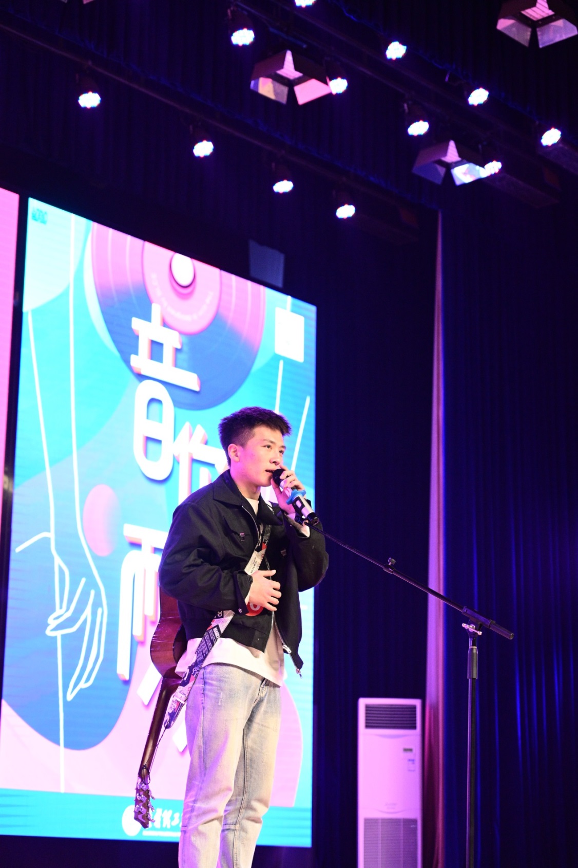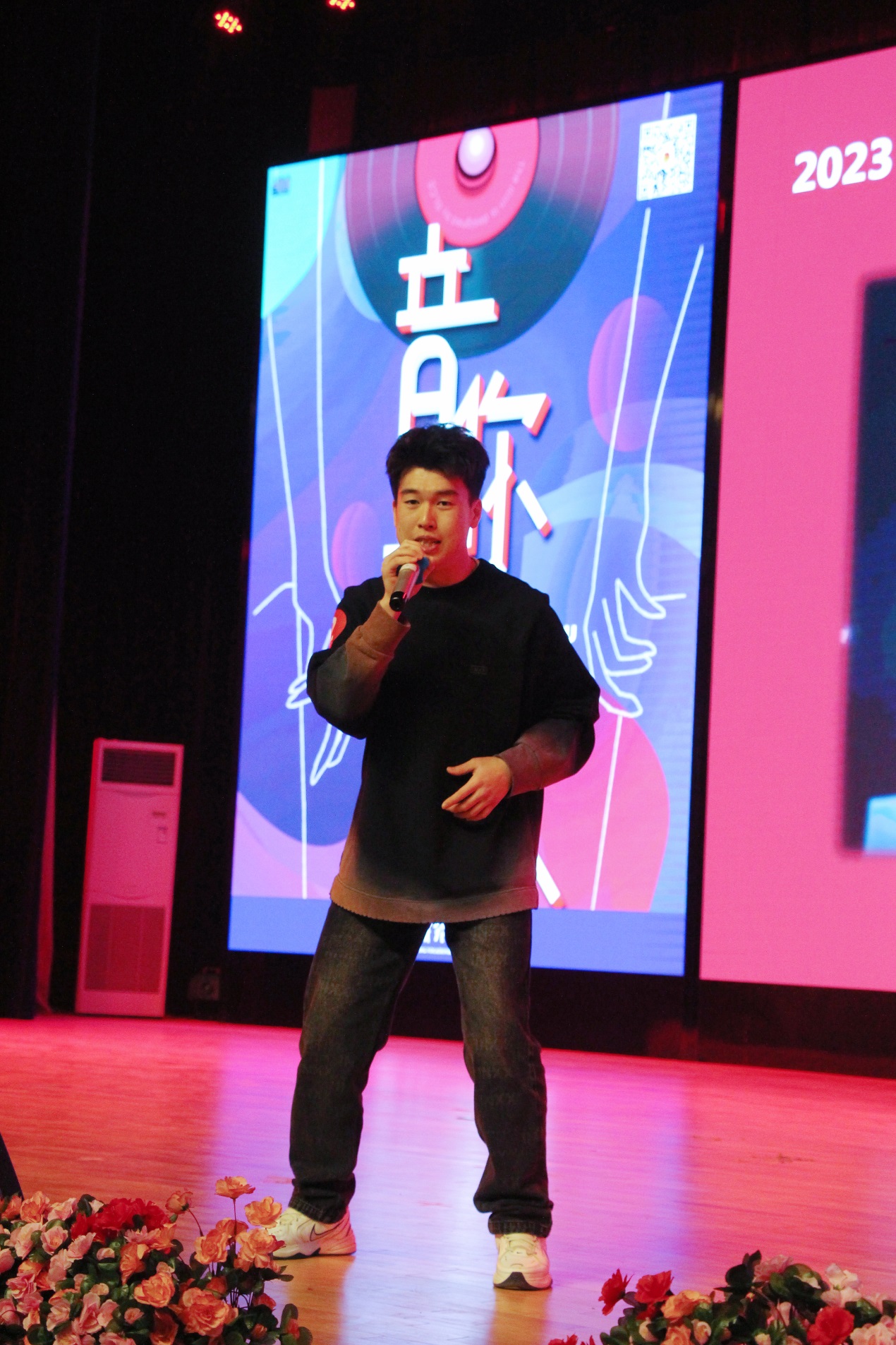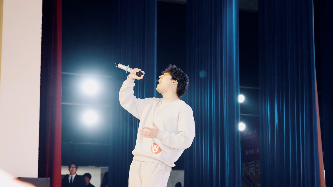 来自护理学院2022级护理专业的李贺坤同学首先上台,为大赛送上了一首深情款款的《男孩别哭》。这是一个人从自我安慰到寻找安慰的成长过程,代入感很强,观众无不受到了真切的情感共鸣。