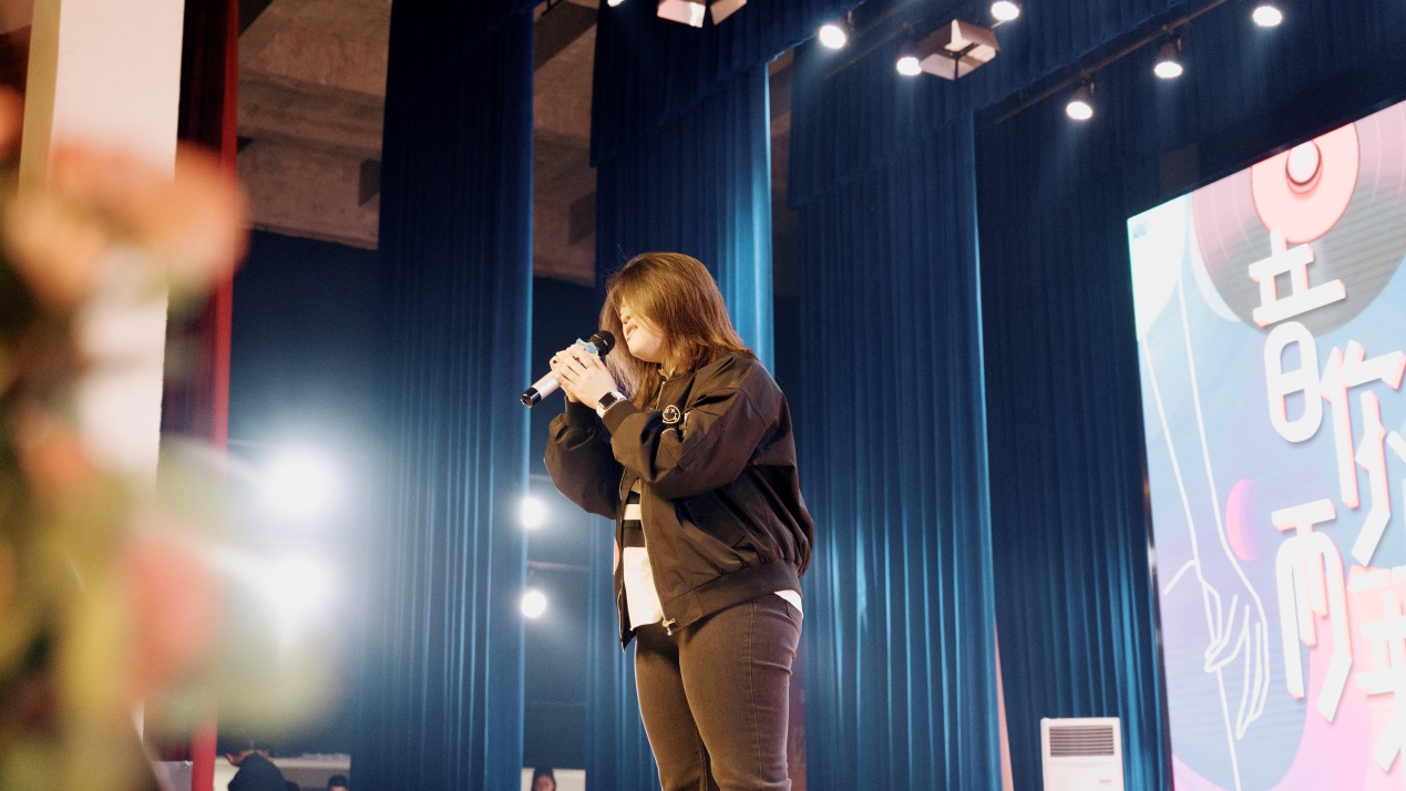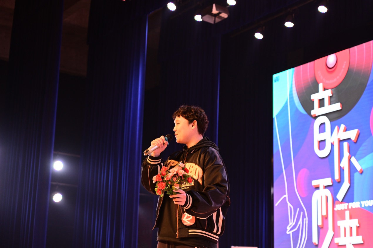 全媒体学院2020级电子商务专业的姜琛浩同学则是先声惊人,以一首热烈似火的《吻别》瞬间引燃了全场的热情。“一转眼,发现你的脸已经陌生得不像从前”,唱功优越且极富感染力的演唱打动了在场每一名观众。