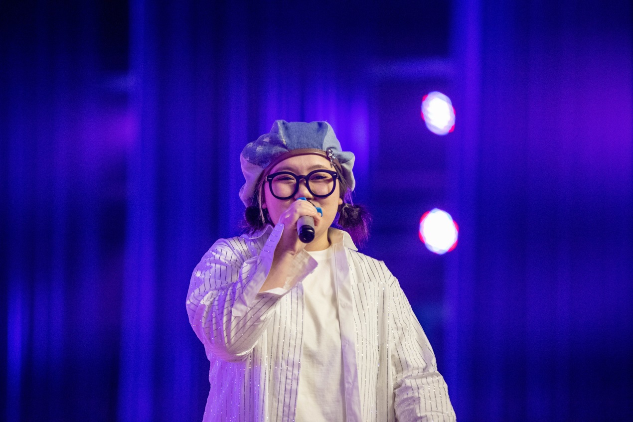 信息学院2022级大数据工程技术专业的王晗潞同学演唱了一首《慢慢》——“天空的白云飘得挺慢,有风筝在晃晃,一切都是那么的悠闲”,甜美却不失律动感的演唱,真的能带给听者闲适之感。