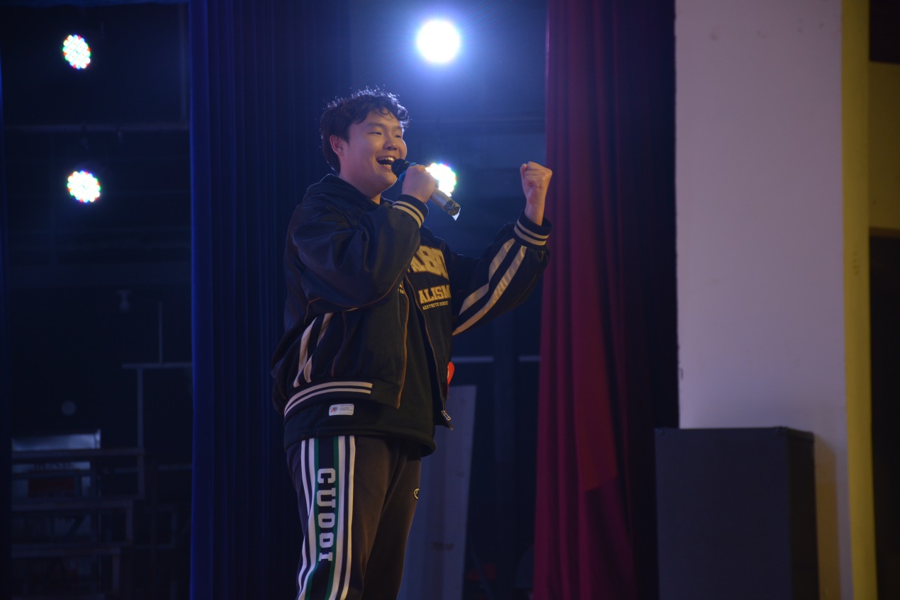下一位登场的是建筑学院2020级工程造价专业的张宝坤,一首《最美的太阳》再次引爆全场。抒情励志,气势磅礴——他用自己澄澈而嘹亮的歌声表达出了自己对梦想、坚持、勇敢和进取的理解,也令在场观众们心潮澎湃。