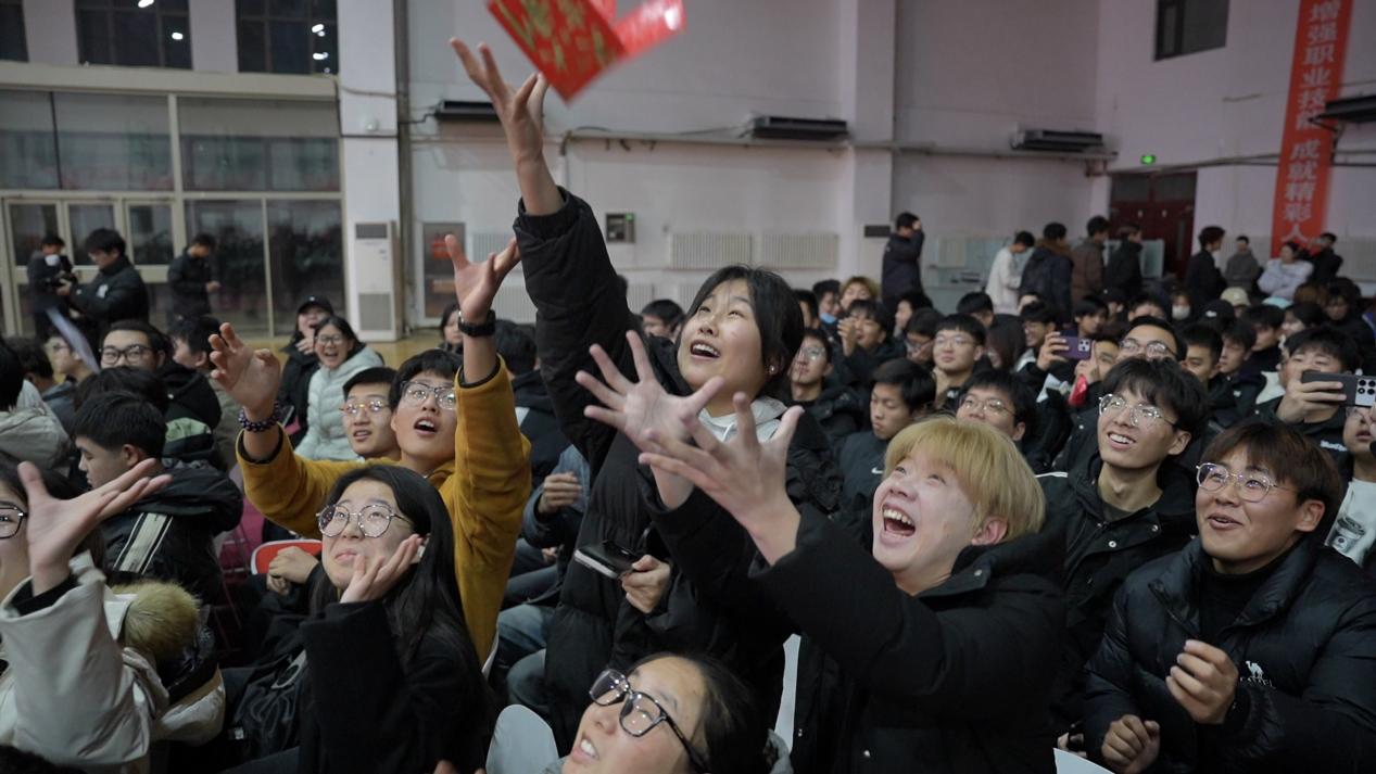 学校的领导老师们,为现场的同学们发放代表新年祝福的红包和糖果,现场喜悦氛围拉满,欢声笑语不断,老师与同学们在喜庆和浓浓的新年氛围里观看2025年元旦晚会。