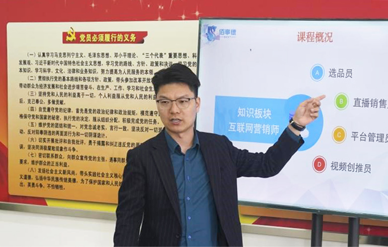 彭经理就互联网营销师的四大职业:选品员、直播销售员、平台管理员、视频创推员,结合互联网发展趋势通过工作内容、工作现状以及未来前景等方面进行了详细的讲解。彭经理表示在未来直播电商发展中,证书等资质材料将会证明学生在该行业的能力和水平,全品直播间将会被逐渐取替。因此,当代学生应该丰富理论知识和技术技能,找到自身优势才能更适应时代的发展。