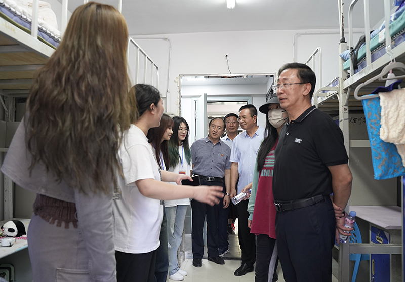 在新生公寓,校长王忠诚与同学亲切交谈,问到大家“来自哪里、学的什么专业、对学校的感觉怎么样。”轻松的对话迅速拉近了彼此的距离,校领导对同学们表达了殷切的关怀,鼓励他们回归学习本位,合理安排新学期学习计划,要有理想、有目标,让2023级新生感受到学校的温暖,同学们表示将以积极向上的精神面貌迎接大学生活。