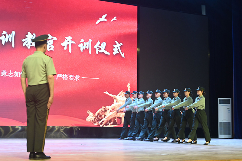 青春有为,强国有我。6月25日,我校在北校区文体馆隆重举行2023年军训教官开训仪式。学生处、就业指导处、武装部副部长王萍,学生处副处长修力轩,学生处老师那鹏及119名军训教官共同参加仪式。