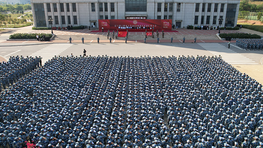 大会在庄严的国歌中拉开帷幕,参训新生如锋刃出鞘,齐聚校园训练场。