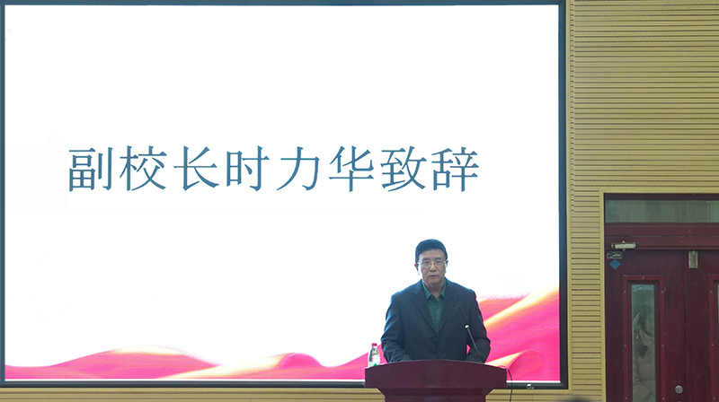 副校长时力华致辞。时校长在讲话中强调了高校学生干部的重要性:学生干部是高校办学的重要依靠力量,是对外展示的重要窗口,是个人成长成才的阶梯。一个学校的学生干部代表着学校学生的整体面貌、水平、能力和素质,是学校和学生之间的桥梁和纽带,更是学校做好学生工作的重要依靠力量,具有重大作用和影响力。大学时期是青年人的黄金时期,希望同学们通过此次培训能对今后的学生干部工作有更深层次的认识,增强责任意识与担当精神,使自己在政治素质、道德素质和心理素质等方面都有进一步的提高。同时也希望同学们通过学生干部工作,切实提高个人素质和能力,为今后走向社会的成长和发展奠定良好基础。