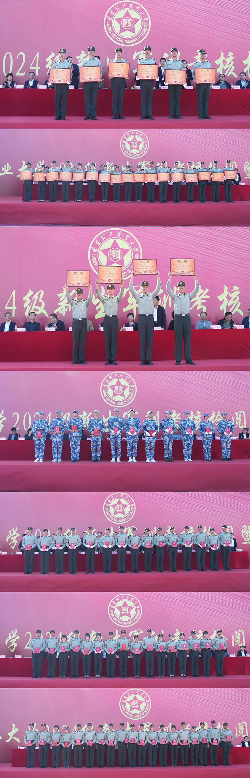 副校长时力华教授宣读表彰决定,学校领导向获奖方队、教官及新生颁发了奖状和荣誉证书。
