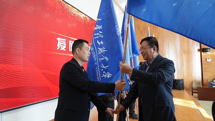 时校长为即将出征的各学院家访团队授旗,舞动的旗帜象征着家访团队的责任与使命,也标志着我校寒假家访工作正式拉开了帷幕。