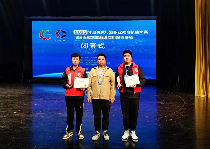 4月7日,2023年度机械行业职业教育技能竞赛可编程控制器系统应用编程大赛在南京工业职业技术大学举行。此次大赛全国本科组共有11组学生参赛,最终选出一等奖一组,二等奖三组,三等奖四组。我校机电学院选派2020级机械设计制造及自动化学生分两组参加本次大赛,经过激烈角逐,金烜旭老师指导的杨立铭同学获二等奖,高利老师指导张俊也同学获三等奖。